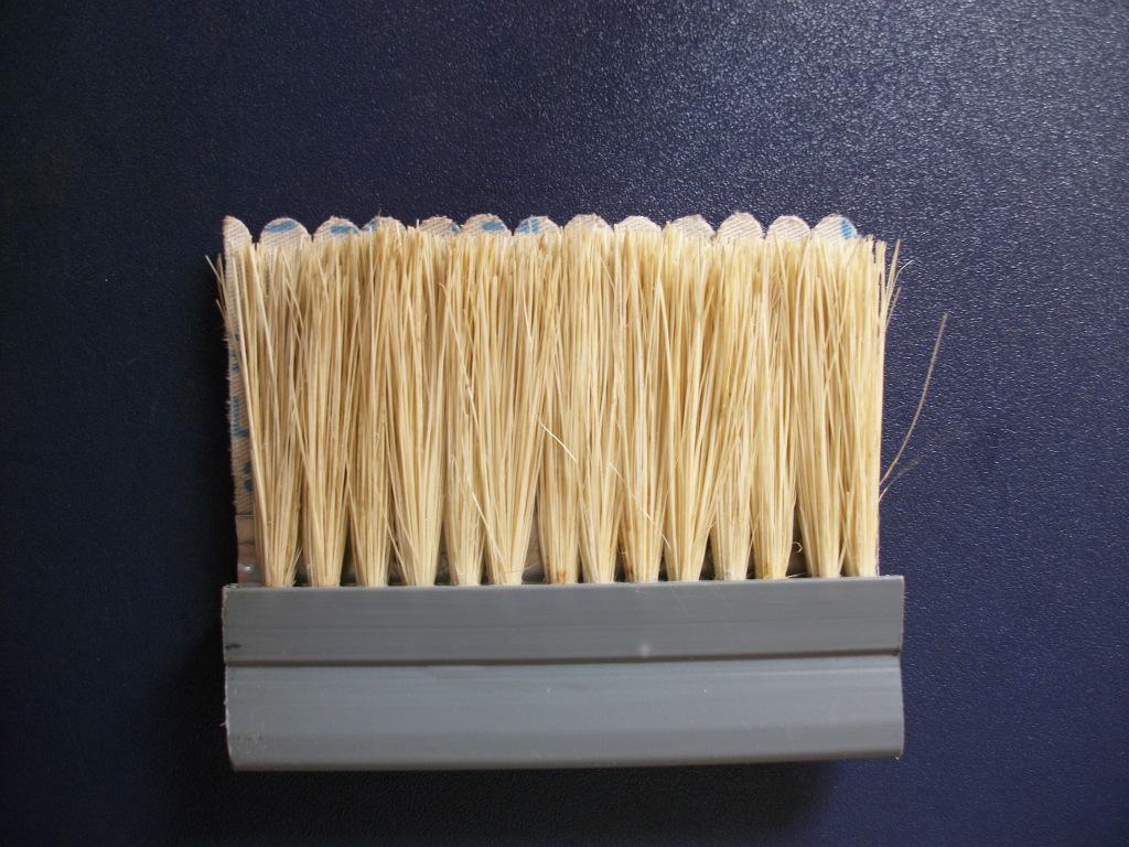 劍麻刷條:采用鋼帶夾住劍麻,中間用鐵絲壓住固定。刷毛緊固,不脫毛,鋼帶的厚度最小達2.5mm*2.5mm最大14mm*14mm單根長度不限。毛長按需定制。